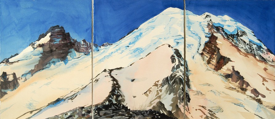 The top of the third of the Burroughs Mountain peaks on the north east side of Mount Rainier has an unparalleled vista including Little Tahoma on the left skyline, the length of the Emmons Glacier and Steamboat Prow up the center.